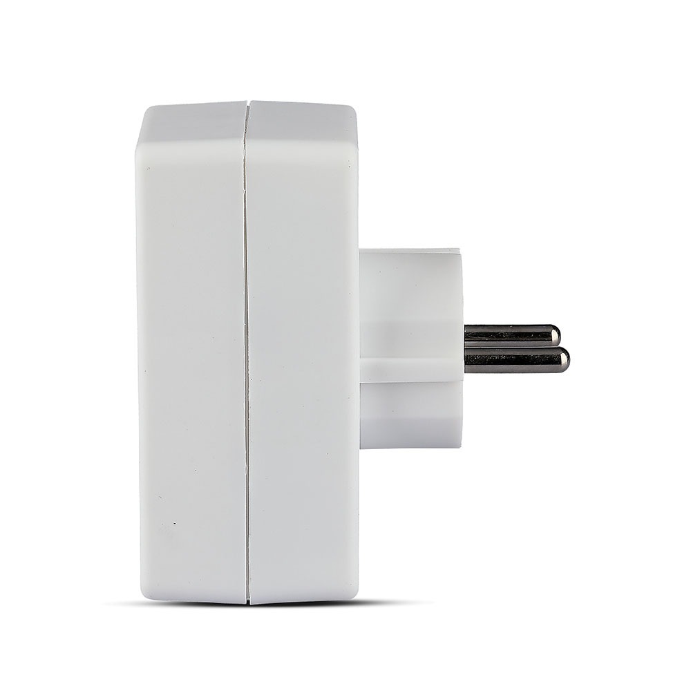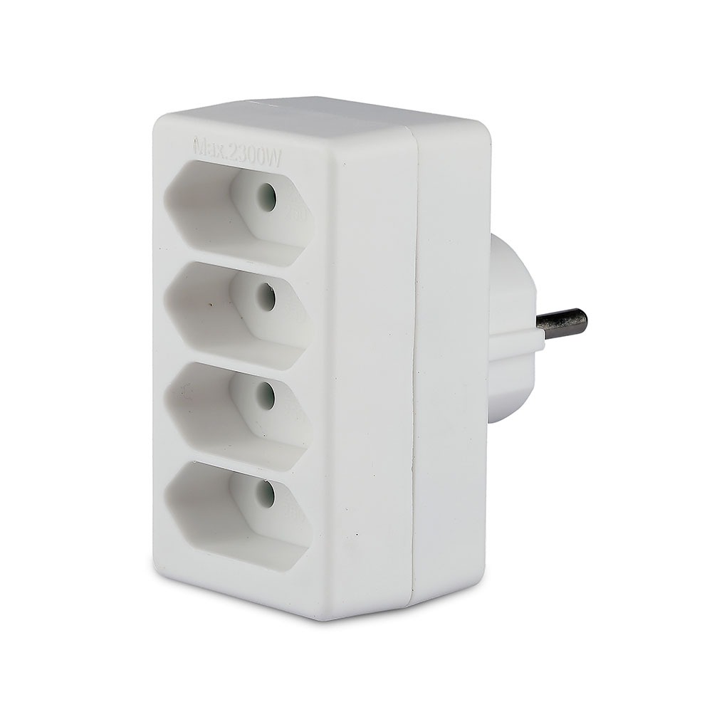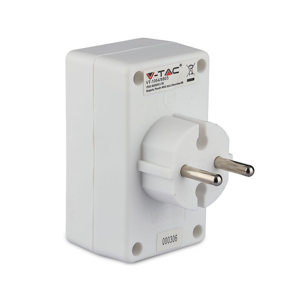 Adapter von V-TAC, Modell VT-1054, für den Einsatz in Haushalten, Büros, Reisen, Hotels und Ausstellungsräumen. Der Adapter hat eine maximale Belastung von 2300W und ist für eine Eingangsspannung von AC 230V geeignet. Er zeichnet sich durch seine Portabilität und einfache Handhabung aus. Die Abmessungen betragen 45mm x 80mm x 75mm bei einem Gewicht von 0,078kg. Ideal für den Einsatz in verschiedenen Umgebungen.
