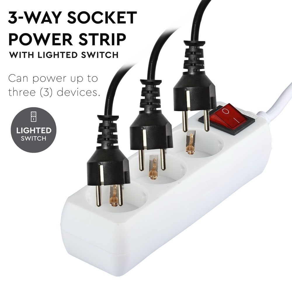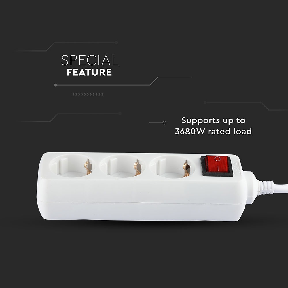 Adapter von V-TAC, Modell VT-1113-2, mit einer maximalen Leistung von 3680W. Der Adapter ist für den Einsatz in Haushalten, Büros, Hotels und Ausstellungsräumen geeignet. Er verfügt über einen integrierten beleuchteten Schalter und eine hochwertige Kabelqualität (3G x 1,5mm²). Die Maße betragen 40mm x 70mm x 220mm bei einem Gewicht von 0,33kg. Einfache Handhabung und geringer Wartungsaufwand.