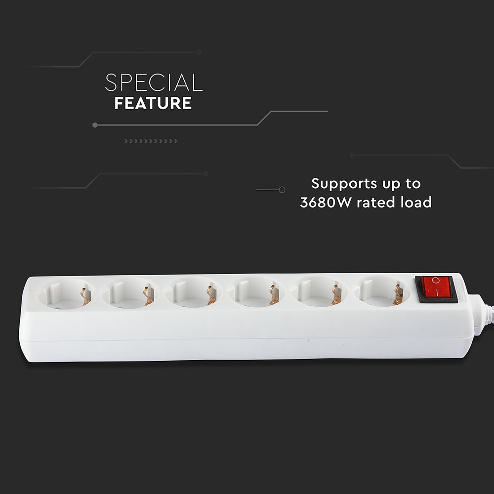 Adapter von V-TAC, Modell VT-1116-2, mit einer maximalen Leistung von 3680W. Dieser Adapter ist für den Einsatz in Haushalten, Büros, Hotels und Ausstellungsräumen geeignet. Er verfügt über einen integrierten beleuchteten Schalter und eine hochwertige Kabelqualität (3G x 1,5mm²). Die Abmessungen betragen 40mm x 70mm x 330mm bei einem Gewicht von 0,44kg. Der Adapter ist einfach zu bedienen und wartungsarm.