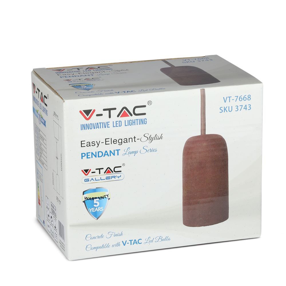 Concrete Holders von V-TAC (SKU 3743, VT-7668-R). Lichtdaten: IP20. Abmessungen: Masse 150x100x120mm, Gewicht 0,38kg, Montage: Suspended.
