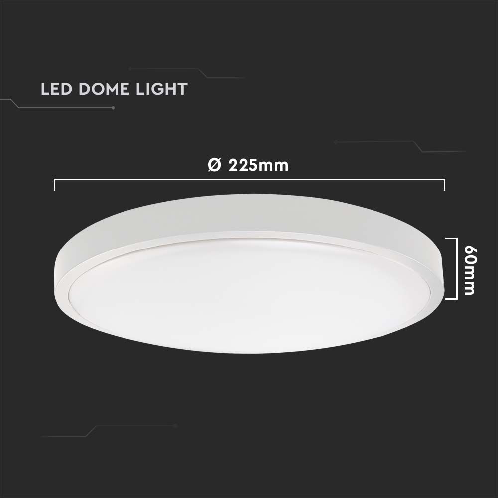 Deckenleuchte von V-TAC, Modell VT-8618S-W-RD, mit einer Leistung von 18 Watt, geeignet für verschiedene Innen- und Außenanwendungen. Sie bietet eine Lichtausbeute von 1800 Lumen bei einem Abstrahlwinkel von 360° und einer Farbtemperatur von 3000K. Die Lebensdauer beträgt 20.000 Stunden und die Leuchte ist nach IP44 geschützt. Die Maße betragen 230 mm x 230 mm x 70 mm und das Gewicht liegt bei 0,48 kg. Die Leuchte verfügt über einen Mikrowellensensor und bietet eine hervorragende Wärmeableitung.