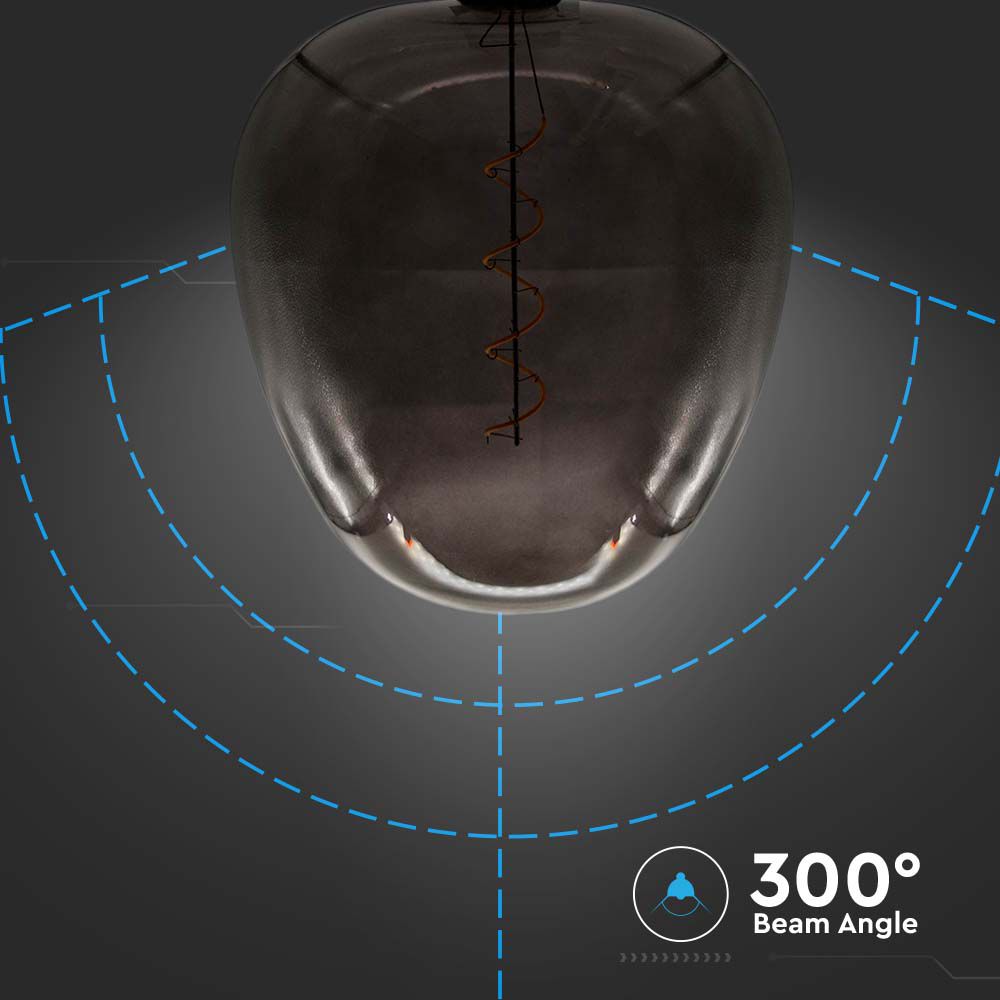 Designer Glühbirne von V-TAC, Modell VT-2263, 4 Watt, ideal für dekorative Beleuchtung. Die Glühbirne bietet einen Abstrahlwinkel von 300° und einen hohen Farbwiedergabeindex von über 80. Mit einer Lebensdauer von 20.000 Stunden und einer Garantie von 2 Jahren ist sie eine zuverlässige Wahl. Die Maße betragen 195 mm in der Länge, 190 mm in der Breite und 280 mm in der Höhe bei einem Gewicht von 0,56 kg. Eigenschaften: stabile LED-Filament-Technologie, kein Flimmern, keine UV-Strahlung, kein Quecksilber.
