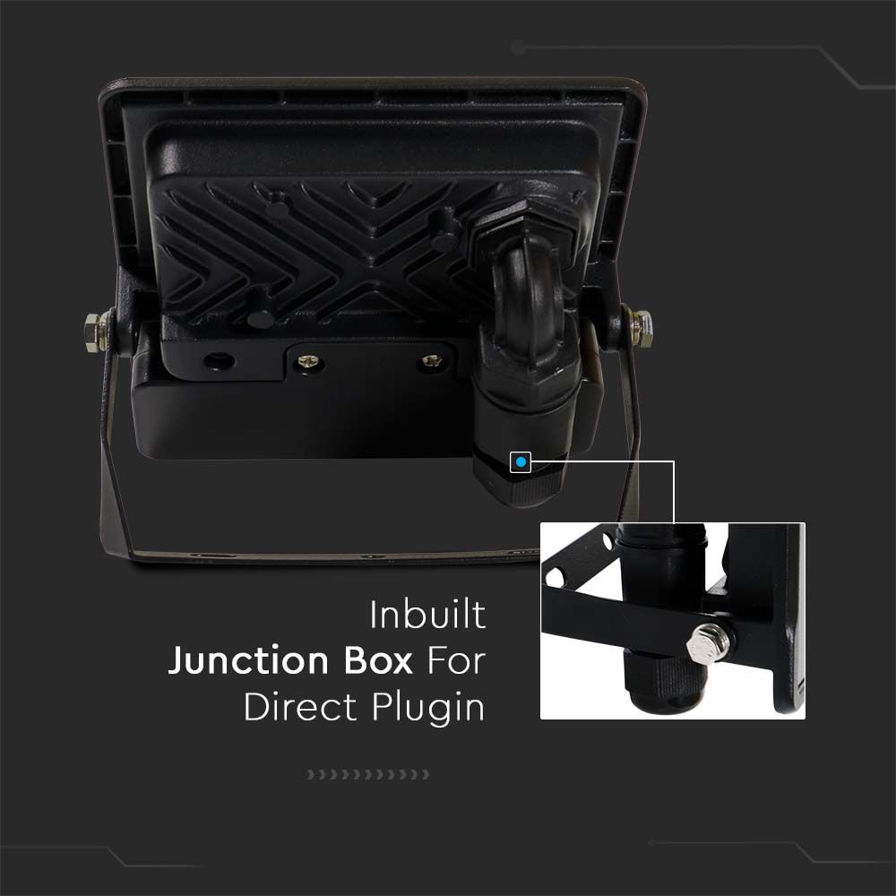 Flutlicht von V-TAC, Modell VT-128S-B, mit einer Leistung von 20 Watt, geeignet für Außenanwendungen. Das Licht liefert 1510 Lumen mit einem Farbwiedergabeindex von über 80 und einem Abstrahlwinkel von 100°. Die Lebensdauer beträgt 25.000 Stunden, und das Produkt ist mit einem PIR-Sensor ausgestattet, der Bewegungen im Radius von 3 bis 10 Metern erkennt. Die Abmessungen betragen 162 x 63 x 133 mm, das Gewicht liegt bei 0,43 kg. Das Flutlicht ist ideal für Fassadenbeleuchtung, Garagen und Parkplätze geeignet.