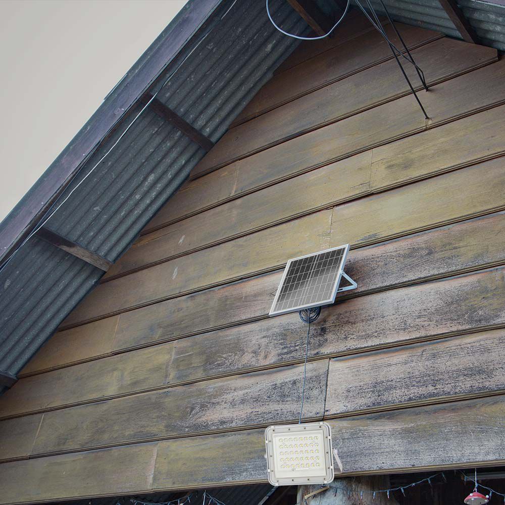 Flutlicht von V-TAC, Modell VT-40W-W, mit einer Leistung von 40 Watt, ideal für den Außenbereich. Das Licht liefert 400 Lumen bei einer Farbtemperatur von 6400K und einem Abstrahlwinkel von 120°. Mit einer IP65 Schutzart ist das Produkt für den Einsatz im Freien geeignet. Die Abmessungen betragen 182 mm x 76 mm x 270 mm und das Gewicht liegt bei 1,42 kg. Ausgestattet mit einer Fernbedienung, automatischer und Timer-Funktion sowie flexibler Installation durch ein 3 m langes Solarpanel-Kabel.
