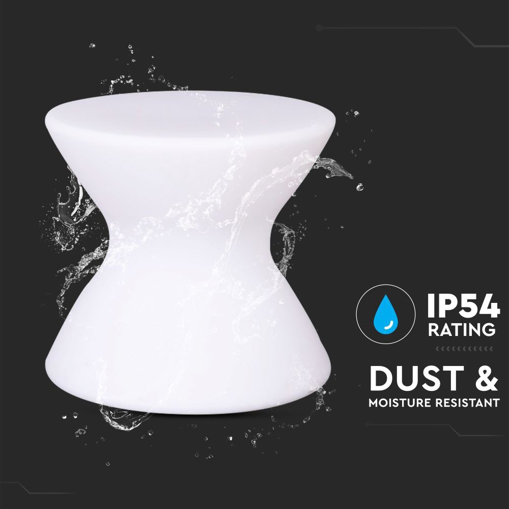 Gartenleuchte von V-TAC, Modell VT-7810, mit einer Leistung von 3W, ideal für den Außenbereich. Sie bietet eine Lichtleistung von 54 Lumen und ist mit einer IP54-Schutzart ausgestattet. Die Lebensdauer beträgt bis zu 50.000 Stunden. Die Maße betragen 380 mm x 410 mm x 410 mm und das Gewicht liegt bei 3,6 kg. Diese Leuchte ist mit einer wiederaufladbaren Lithium-Batterie ausgestattet und ermöglicht die Steuerung per Fernbedienung.