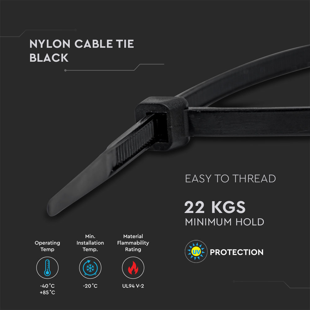 Kabelbinder von V-TAC, Modell 11174, ideal zum Sichern von losen Kabeln und Komponenten. Diese Kabelbinder haben eine maximale Haltekraft von 22 kg und sind aus hochwertigem, UV-geschütztem Nylon gefertigt. Sie verfügen über einen zuverlässigen Verriegelungsmechanismus und sind für den vielseitigen Einsatz geeignet. Die Maße betragen 4,5 mm x 300 mm und das Gewicht liegt bei 0,159 kg. Hohe Qualität und einfache Handhabung zeichnen dieses Produkt aus.