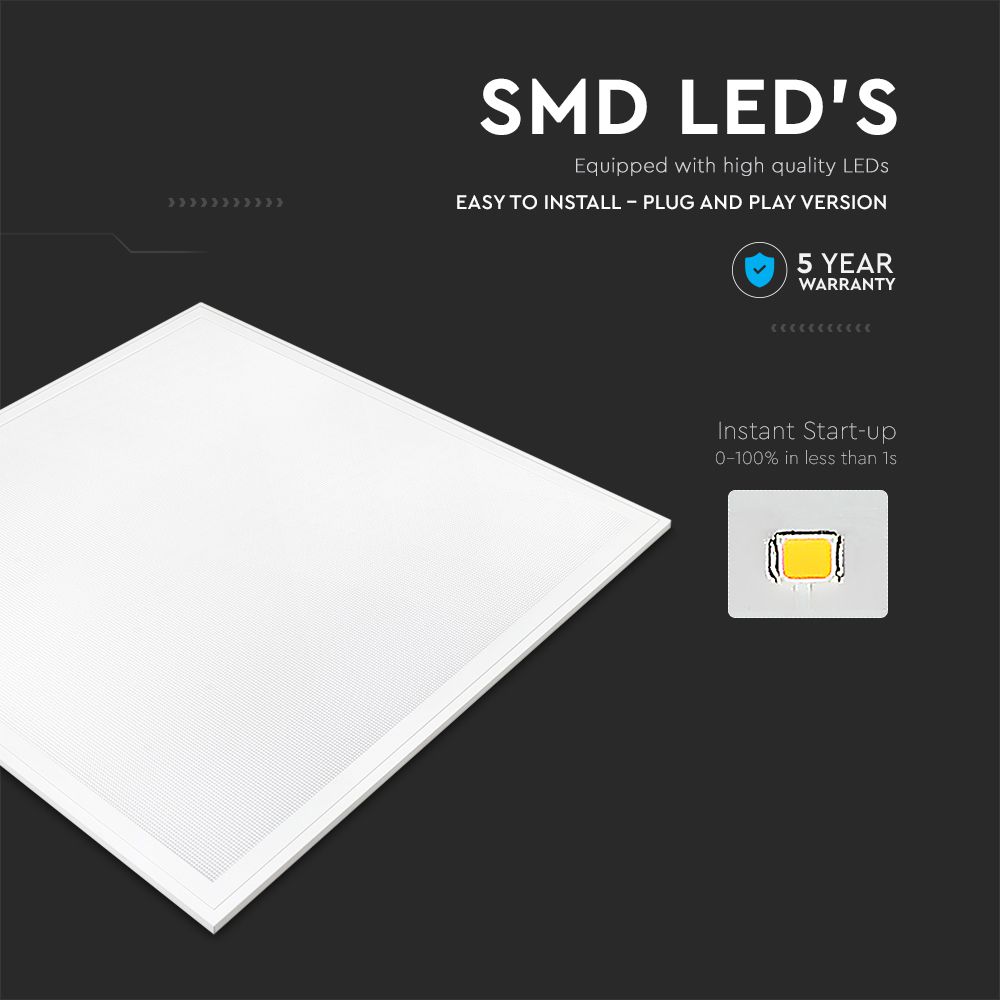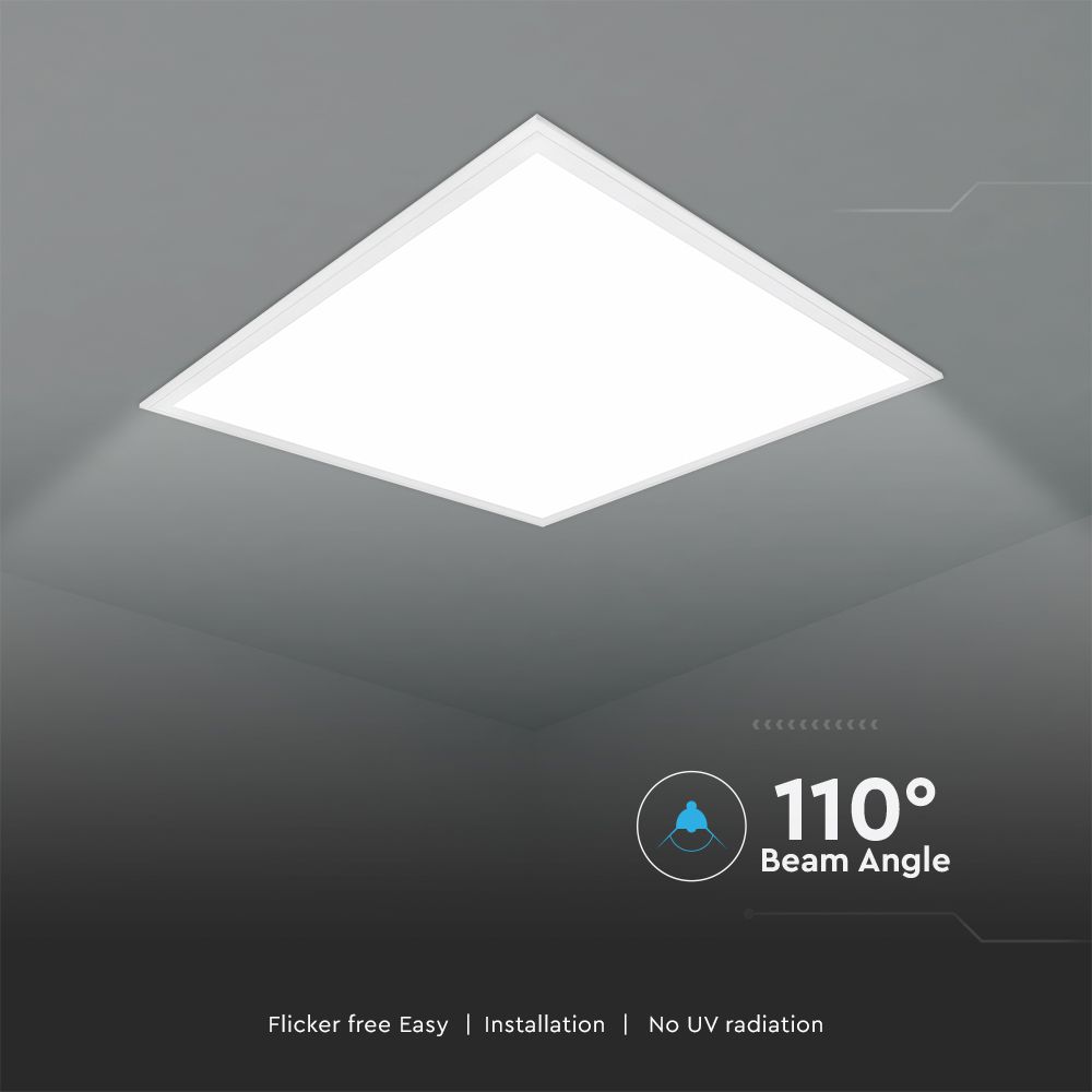 LED Panel von V-TAC, Modell VT-629-1 mit einer Leistung von 29 Watt, geeignet für Büros, Konferenzräume und Ausstellungsräume. Das Panel bietet eine Lichtausbeute von 3480 Lumen bei 120 lm/W und hat eine Farbtemperatur von 4000K sowie einen Abstrahlwinkel von 110°. Die Lebensdauer beträgt bis zu 30.000 Stunden und es ist mit einem robusten Aluminiumgehäuse ausgestattet. Die Maße betragen 618 mm x 620 mm und das Gewicht liegt bei 2,25 kg. Ein einfacher Anschluss des Treibers ermöglicht eine schnellere Installation. Eigenschaften: hohe Lichtausbeute, langlebig, geeignet für verschiedene Anwendungen.