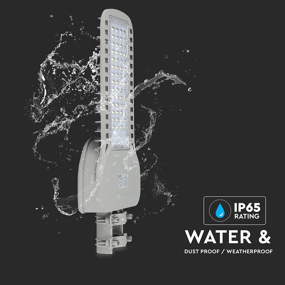 LED Strassenleuchte von V-TAC, Modell VT-104ST-N, mit einer Leistung von 100 Watt, geeignet für den Einsatz im Außenbereich. Sie bietet eine Lichtausbeute von 13500 Lumen bei 135 lm/W und hat eine Farbtemperatur von 6500K sowie einen Abstrahlwinkel von 120°. Die Lebensdauer beträgt 25.000 Stunden und die Leuchte ist nach IP65 geschützt. Die Abmessungen betragen 545 mm x 265 mm x 79 mm und das Gewicht liegt bei 2,54 kg. Diese Leuchte ist mit hocheffizienten Samsung LED-Chips ausgestattet und bietet bis zu 85% Energieeinsparung.