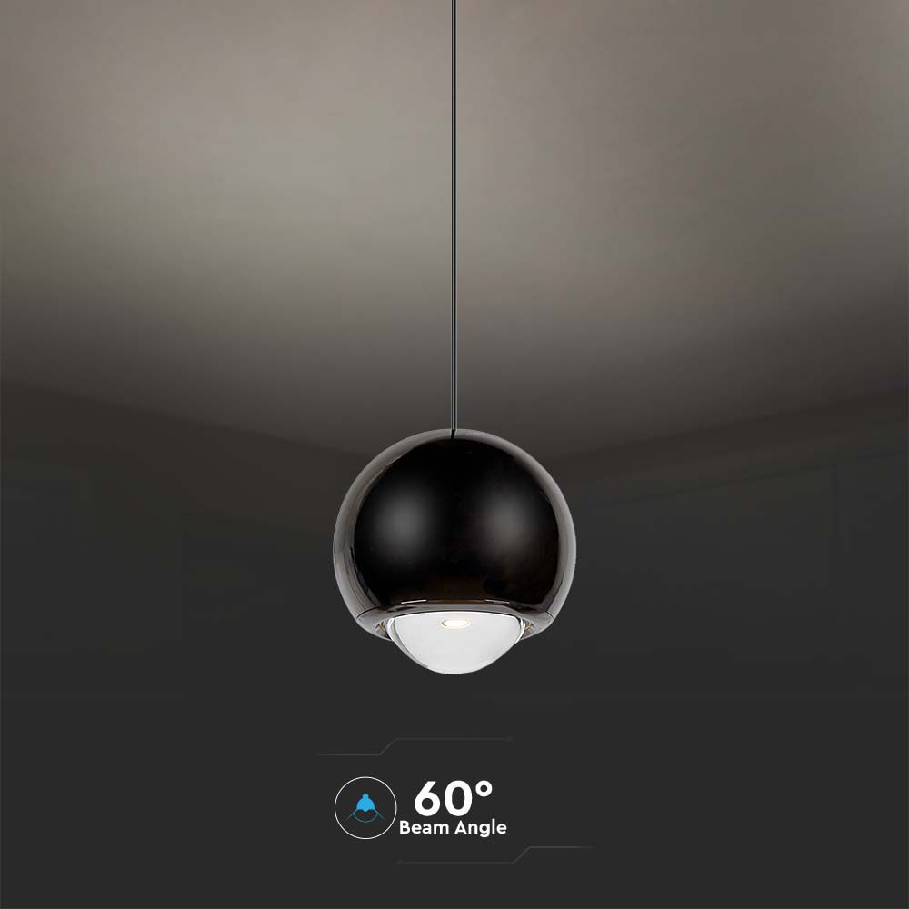 Pendelleuchte von V-TAC, Modell VT-7508-B, mit einer Leistung von 5 Watt, geeignet für Wohnräume. Sie bietet eine Lichtausbeute von 500 Lumen bei einer Farbtemperatur von 3000K und einem Abstrahlwinkel von 60°. Die Lebensdauer beträgt 20.000 Stunden und erfüllt hohe Qualitätsstandards. Die Abmessungen sind 310mm x 160mm x 160mm und das Gewicht beträgt 0,92 kg. Die Montage ist einfach und erfordert wenig Wartung. Energieeffiziente LED-Technologie und höhenverstellbar.