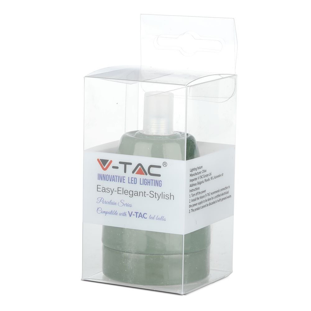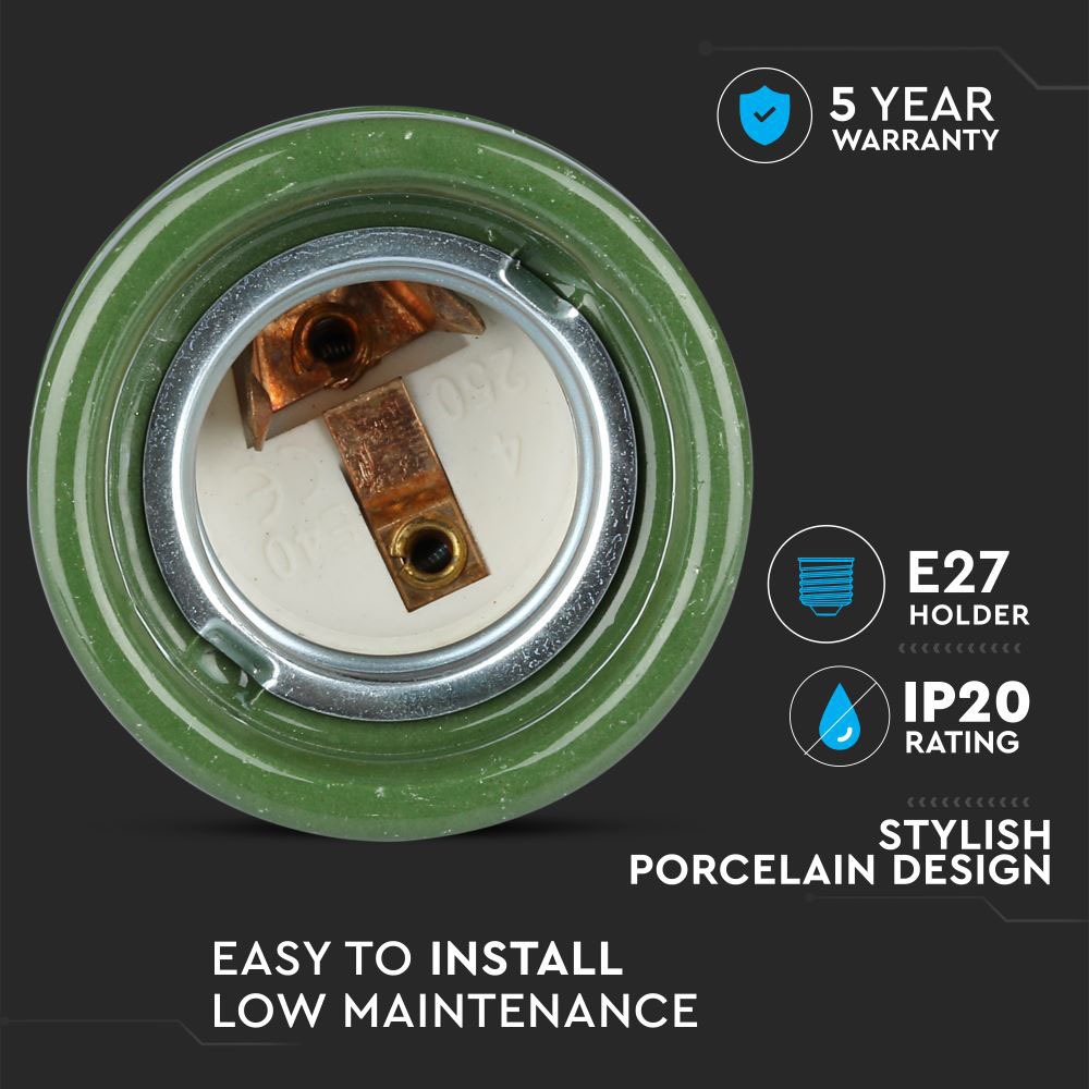 Pendelleuchte von V-TAC, Modell VT-799-GN, geeignet für moderne Innenräume. Die Leuchte hat eine maximale Belastbarkeit von 60 Watt. Sie besteht aus robustem und langlebigem Porzellan und ist mit einem E27 Sockel ausgestattet (Glühbirne nicht enthalten). Die Maße betragen 48 mm x 48 mm x 87 mm und das Gewicht liegt bei 0,13 kg. Ideal für Hotels, Wohnräume, Restaurants und gewerbliche Beleuchtung.