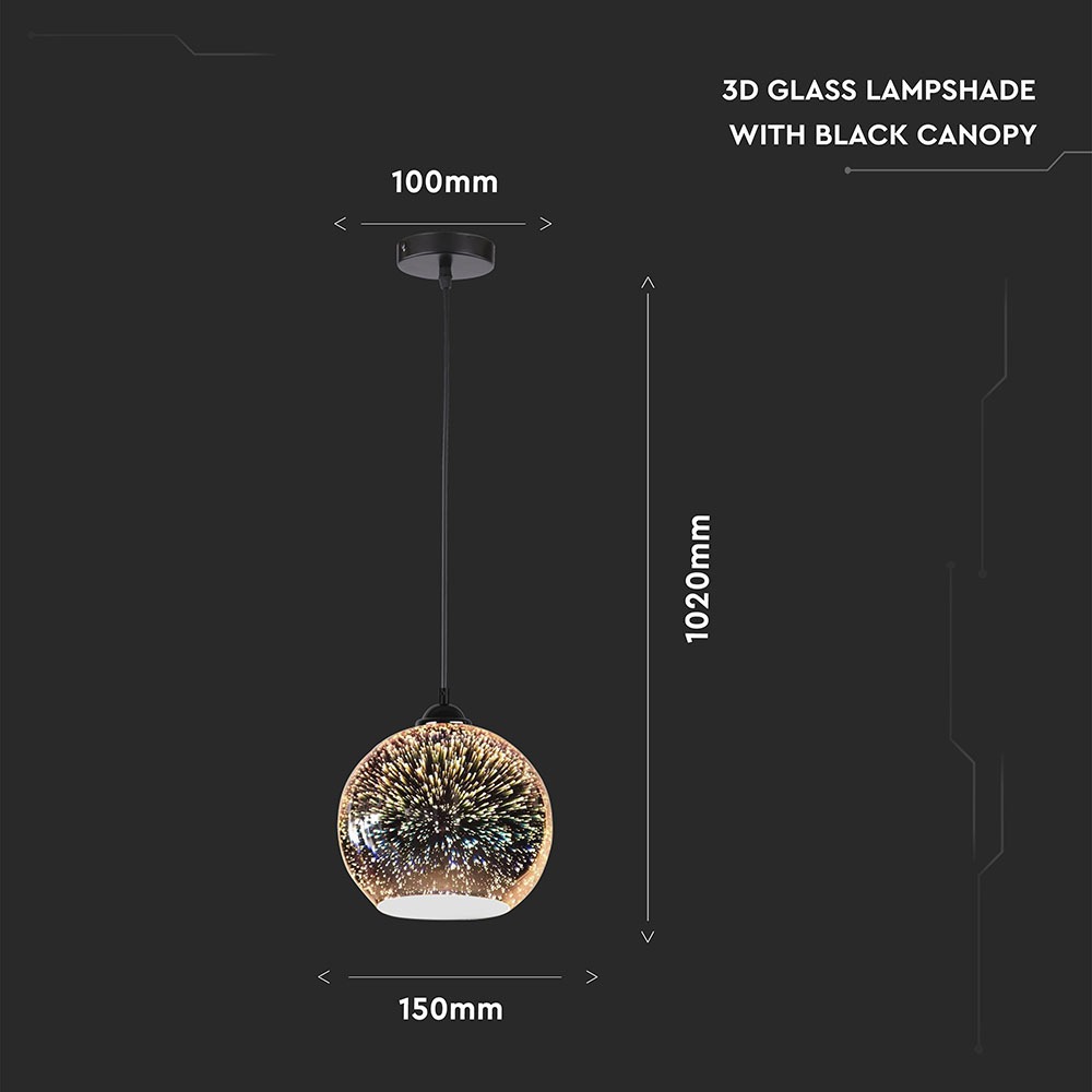 Pendelleuchte von V-TAC, Modell VT-7152, geeignet für moderne Innenräume. Die Leuchte hat eine maximale Leistung von 60 Watt und ist ideal für den Einsatz in Hotels, Wohnbereichen, Restaurants und gewerblicher Beleuchtung. Sie besteht aus robustem und langlebigem Glas und verfügt über eine elegante Farbgestaltung in Glas und schwarzem Baldachin. Die Montage erfolgt hängend. Die Leuchte ist mit einem E27 Sockel ausgestattet (Glühbirne nicht enthalten).