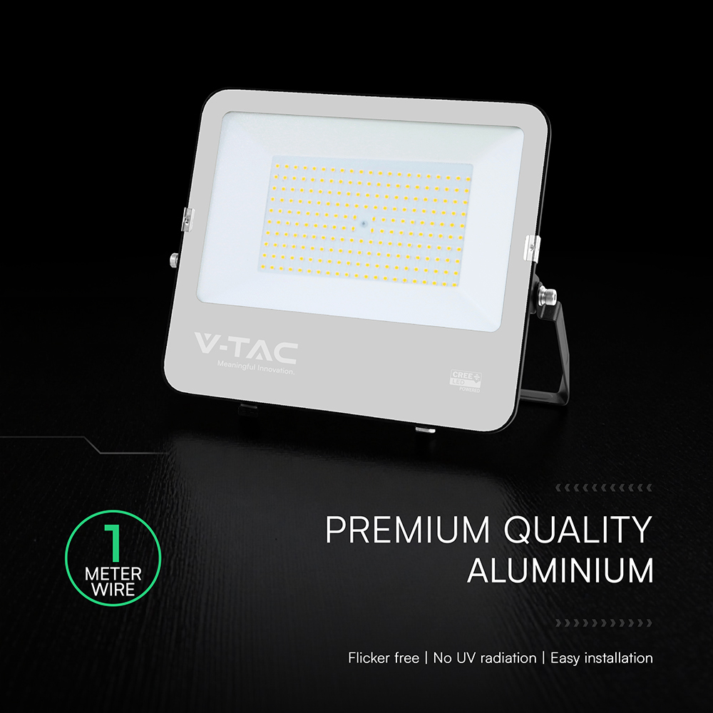 Der LED-Strahler von V-TAC, Modell VT-44153, mit einer Leistung von 150 Watt eignet sich ideal für den Einsatz an Gebäudefassaden, Sportanlagen und Parkplätzen. Mit einer Lichtausbeute von 20250 Lumen und einer Effizienz von 135 lm/W bietet er eine Farbtemperatur von 4000K und einen Farbwiedergabeindex von über 70. Der Strahler hat eine Lebensdauer von 30.000 Stunden und ist mit einem IP65-Schutz ausgestattet, was ihn für den Außeneinsatz geeignet macht. Die Abmessungen betragen 336,0 mm x 52,0 mm x 293,0 mm bei einem Gewicht von 1,97 kg. Das Produkt ist robust und langlebig dank seines korrosionsbeständigen Aluminiumdesigns.