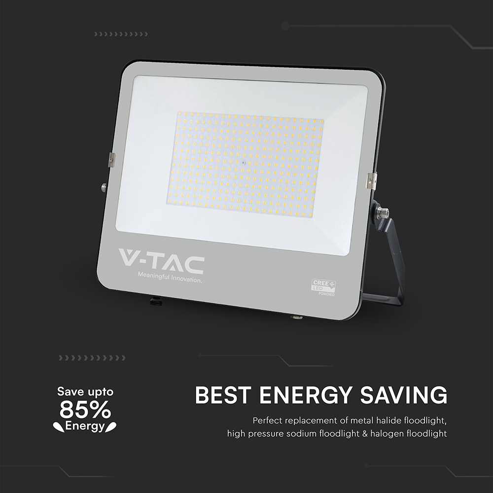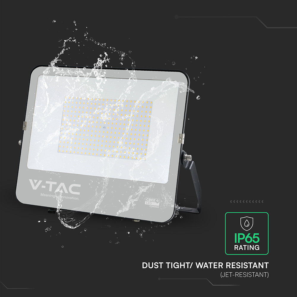 Der LED-Strahler von V-TAC, Modell VT-44201, bietet eine Leistung von 200 Watt und eignet sich ideal für den Einsatz im Außenbereich. Mit einer Lichtausbeute von 27000 Lumen und einer Effizienz von 135 lm/W sorgt er für eine helle Ausleuchtung. Der Strahler hat eine Lebensdauer von 30.000 Stunden und ist mit einem IP65-Schutz ausgestattet, was ihn wetterfest macht. Die Abmessungen betragen 411 mm x 52 mm x 345 mm bei einem Gewicht von 2,95 kg. Er ist robust und langlebig dank seines korrosionsbeständigen Aluminiumdesigns.