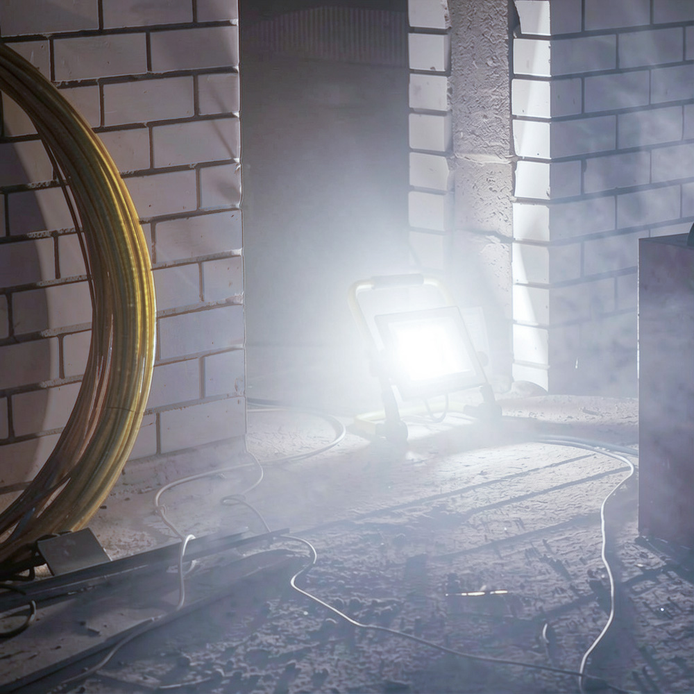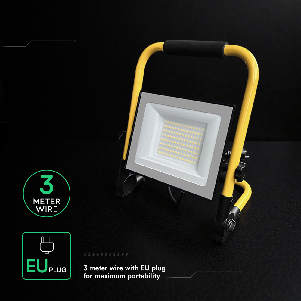 Der LED-Strahler von V-TAC, Modell VT-44049, mit einer Leistung von 50 Watt eignet sich ideal für den Einsatz in Garagen, Werkstätten und Kellern. Er bietet eine Lichtleistung von 5000 Lumen bei einer Farbtemperatur von 6500K und einem Farbwiedergabeindex von über 70. Der Abstrahlwinkel beträgt 115 Grad, und die Schutzart ist IP65. Die Lebensdauer beträgt 30.000 Stunden, und das Produkt wird mit einer Garantie von 6 Jahren geliefert. Die Abmessungen betragen 265 x 62 x 355 mm bei einem Gewicht von 1,24 kg. Der Strahler ist mit einem L-Stand ausgestattet und verfügt über ein robustes, korrosionsbeständiges Aluminiumgehäuse.