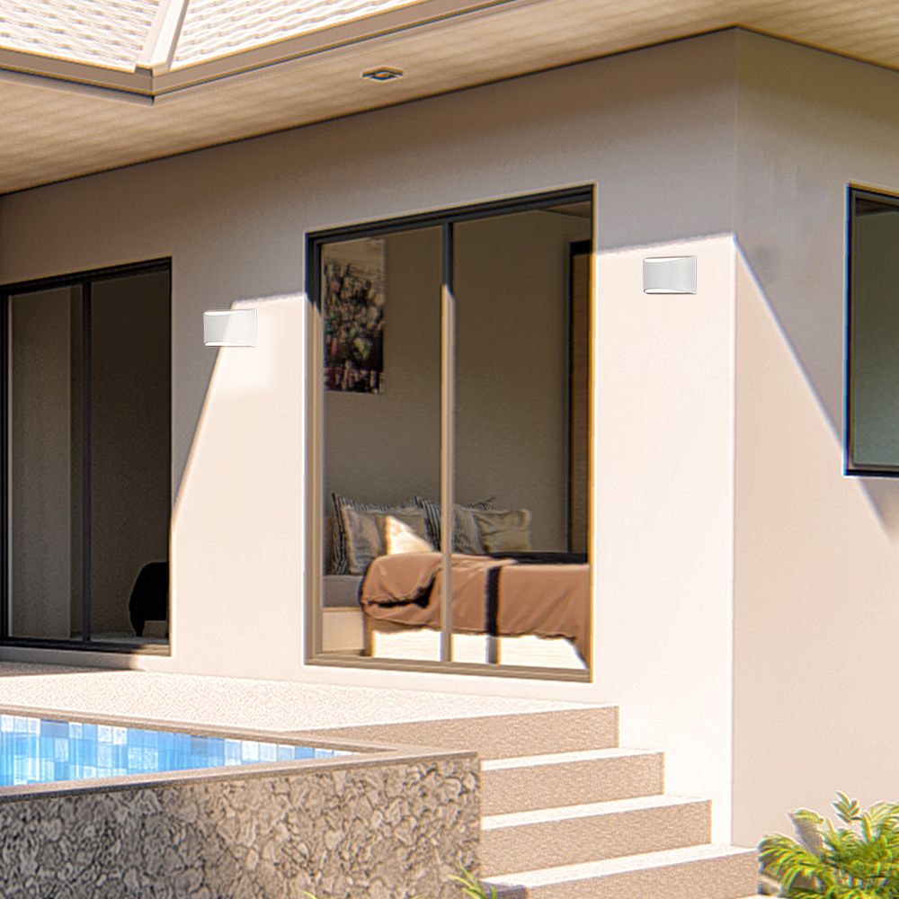 Wandleuchte von V-TAC, Modell VT-815-W-N, mit einer Leistung von 10 Watt, geeignet für den Außenbereich. Sie bietet eine Lichtausbeute von 1280 Lumen, einen Farbwiedergabeindex von über 80 und einen Abstrahlwinkel von 120°. Die Lebensdauer beträgt 20.000 Stunden und die Wandleuchte ist nach IP54 klassifiziert. Die Abmessungen sind 230 mm x 125 mm x 155 mm und das Gewicht beträgt 1,17 kg. Diese Wandleuchte ist eine elegante Alternative zu traditionellen Up-Down-Leuchten und besteht aus robustem Aluminium für eine effiziente Wärmeableitung.