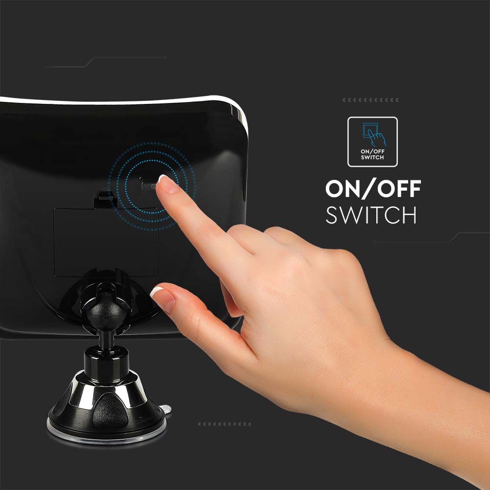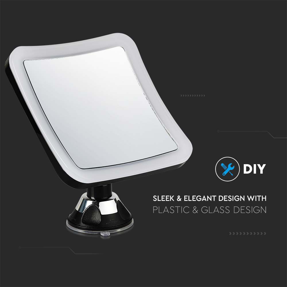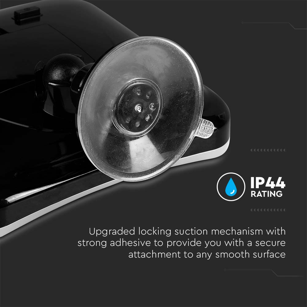 Wandleuchte von V-TAC, Modell VT-7573, mit einer Leistung von 3,2 Watt, ideal für den Einsatz in Badezimmern oder Kosmetikbereichen. Sie bietet eine Lichtstärke von 30 Lumen, einen Farbwiedergabeindex von über 80 und einen Abstrahlwinkel von 120°. Die Wandleuchte hat eine IP44 Schutzart, was sie spritzwassergeschützt macht. Die Abmessungen betragen 173 mm x 78 mm x 210 mm und das Gewicht liegt bei 0,47 kg. Sie ist mit einem verbesserten Saugsystem ausgestattet, das eine sichere Befestigung an glatten Oberflächen ermöglicht.